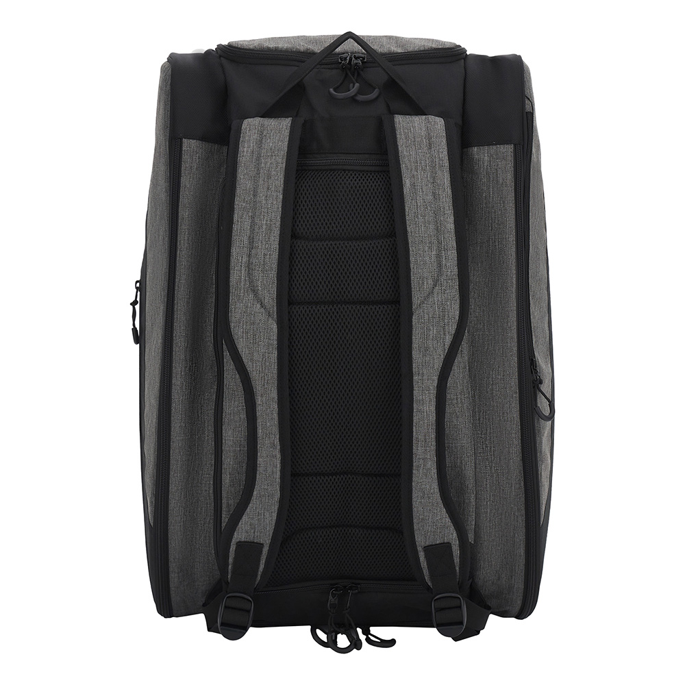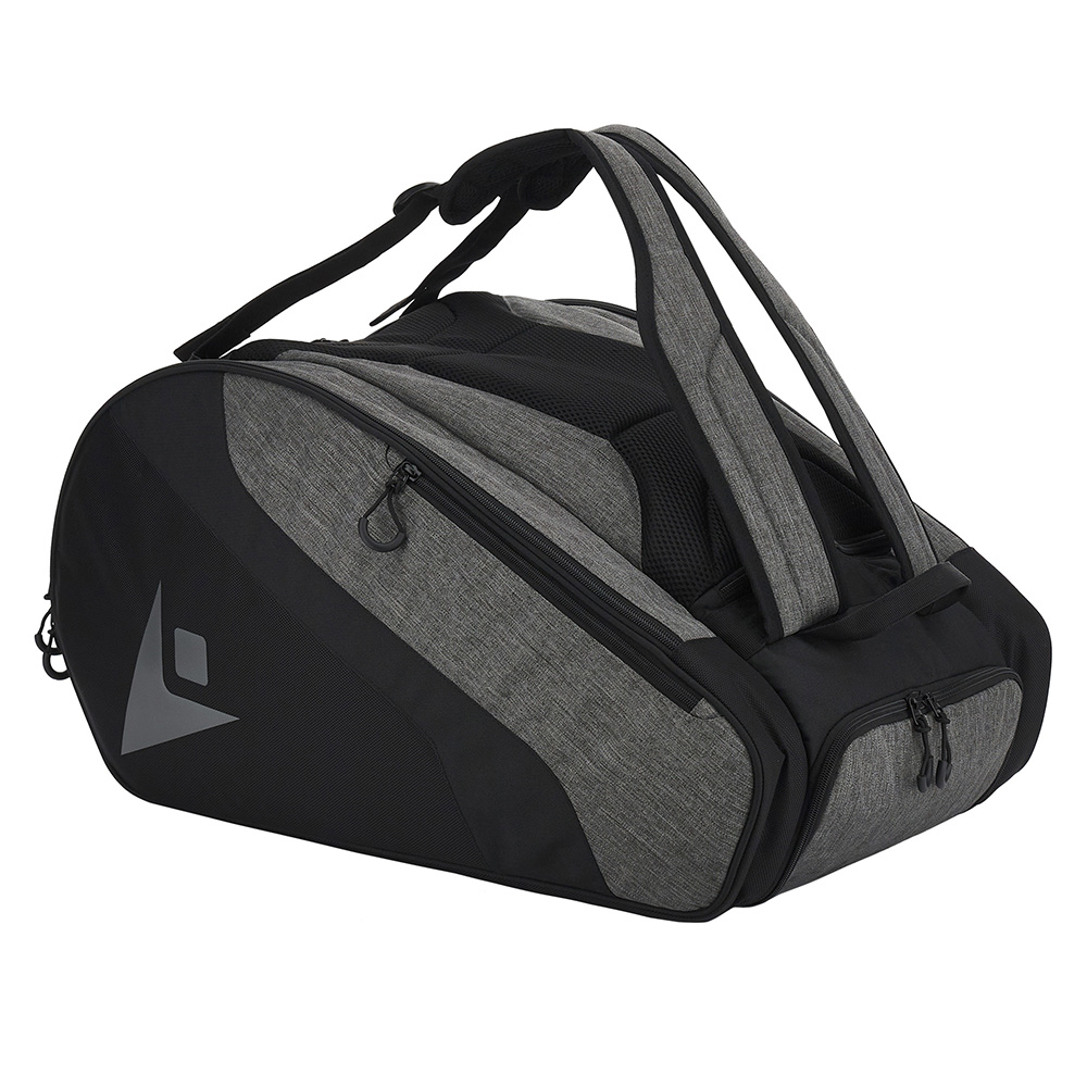 Include un compartiment central cu fermoar dublu si doua compartimente laterale in care incap 2 rachete de padel in fiecare. De asemenea include si un compartiment in partea superioara pentru alte obiecte si unul lateral pentru incaltaminte.